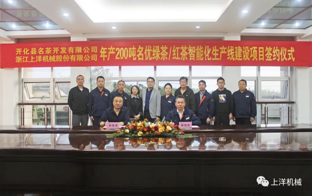 更多內(nèi)容10月24日,開化名茶開發(fā)有限公司與上洋機械正式簽約“年產(chǎn)200噸名優(yōu)綠茶/紅茶智能化生產(chǎn)線”建設(shè)項目。