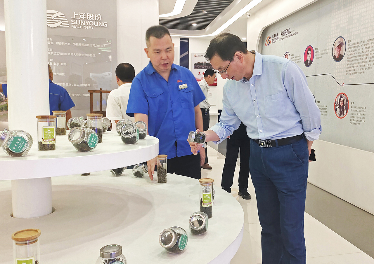 11月30日,中國國際茶文化研究會副會長丁世明、衢州市政協副主席琚建軍、中國農業科學院茶葉研究所研究員魯成銀等專家領導一行蒞臨上洋機械現場考察,一起為衢州百億茶產業發展把脈問診,共話"三茶統籌"發展新機遇。