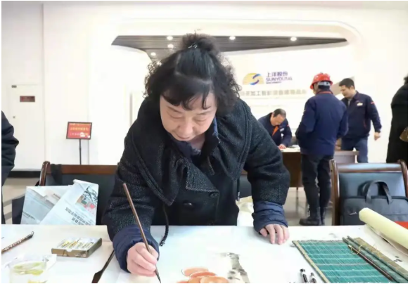 此次活動,公司邀請了來自市書法協(xié)會的書法老師們蒞臨現(xiàn)場,展示書法藝術(shù)精髓,弘揚中國特色的傳統(tǒng)民間文化?!按猴L(fēng)浩蕩展鴻圖、虎步奔騰開勝景”、“茶緣廣裕業(yè)有孚、新程奮進正當(dāng)時”......老師們妙筆生花,一對對喜氣的虎年春聯(lián)、年畫,烘托出濃濃年味;一句句美好的祝福,伴著墨香暖人心扉。上洋家人們趁工作休息間隙紛紛前來挑選心儀的虎年春聯(lián)、年畫,與老師們合影留念,現(xiàn)場一片溫馨祥和的喜慶氣氛。